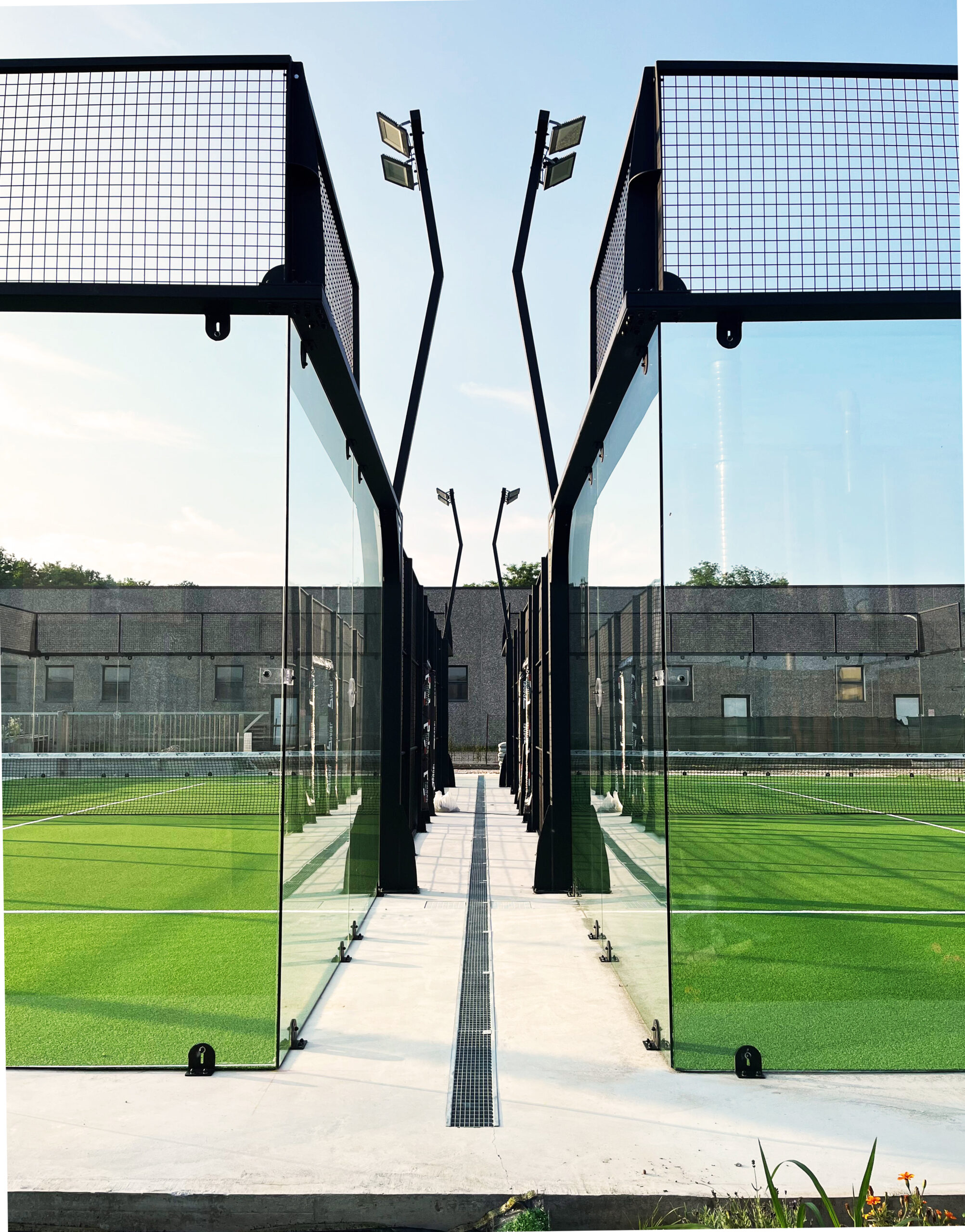 Campi super panoramici con vetri temperati di 12mm e illuminazione a fari led perfetta per le partite serali